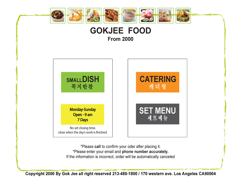 Order to  Gok Jee Foods  (Phone:213.480.1800)