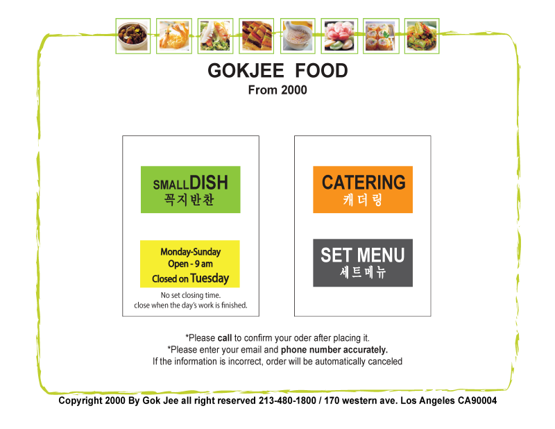 Order to  Gok Jee Foods  (Phone:213.480.1800)